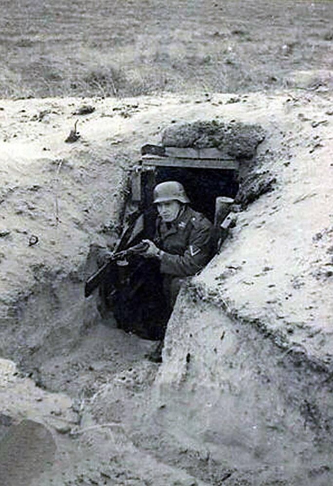Duitse soldaten stonden overal paraat. Ook bij deze bunker in de duinen bij Bure Blinkert.