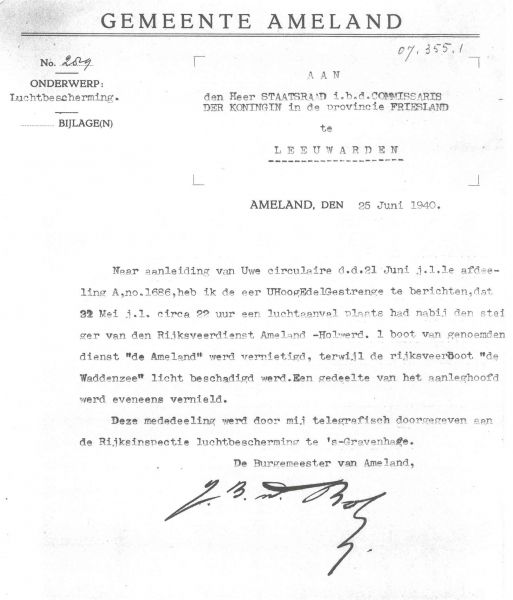 De komst van vakantiegangers werd vanaf 31 mei bemoeilijkt door een Britse luchtaanval waarbij de veerboot ‘Ameland’, gelegen aan de steiger in Nes, vrijwel geheel werd vernietigd. Ook de steiger zelf liep zware averij op. Vanaf eind augustus beperkte het reizigersvervoer zich tot militairen en beambten. Zonder Ausweis was het niet langer mogelijk het eiland te bezoeken of te verlaten.