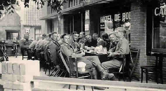 Bewoners en bezetters waren eensgezind bij het bewaren van de ‘lieve vrede’ op Ameland. Niet zelden werd er gezamenlijk een glas gedronken op het terras van Hotel de Boer, later bekend als Hotel de Jong.